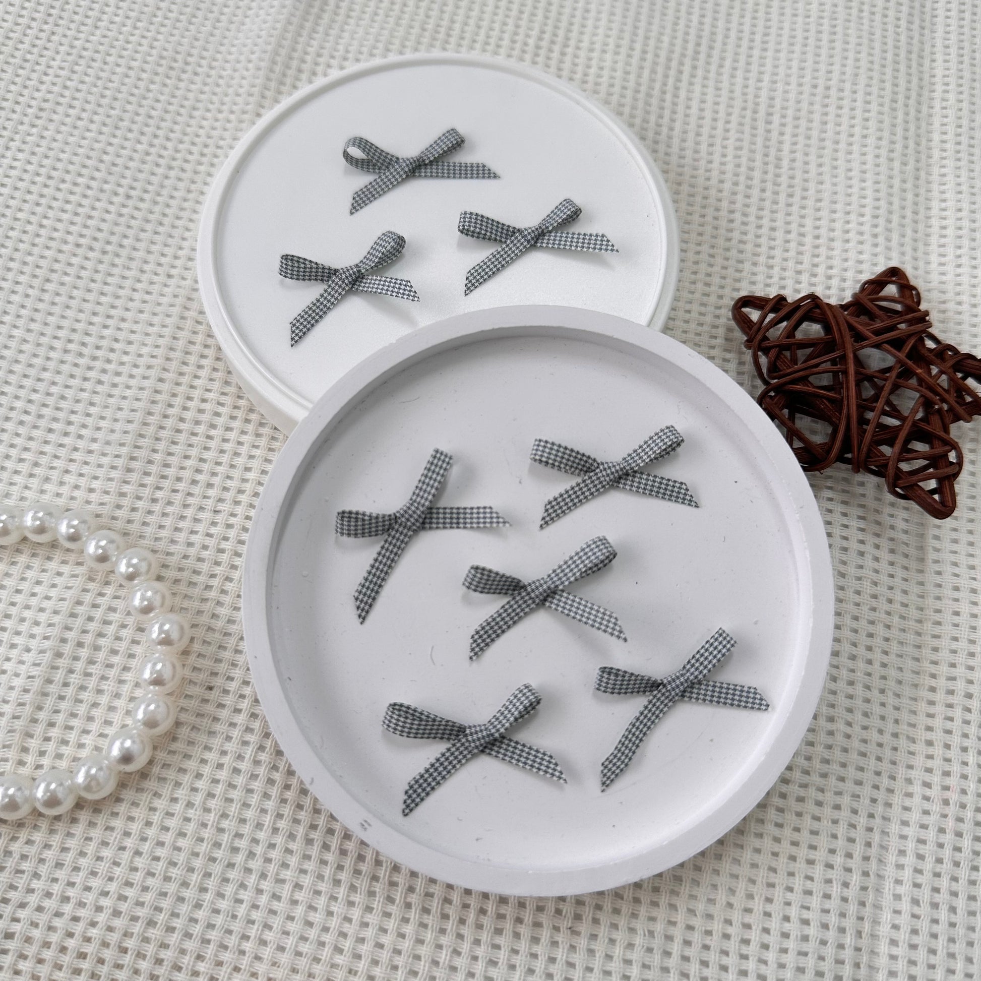 2.8cm Checkered Ribbon: Greenish Grey